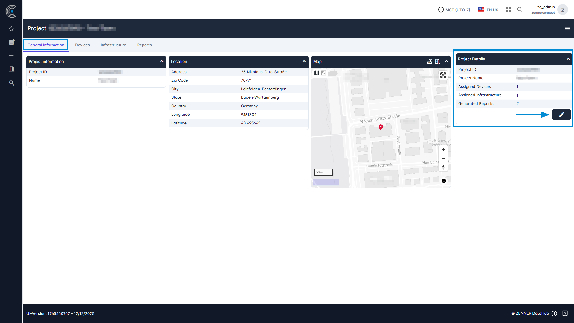 One option is to edit an existing Project via the respective project page. Therefore open the wished project via the project list and then click on the “Editbutton on the right.