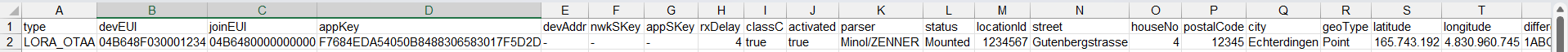 Important: The correctness of the data entered is not checked during import. If there is an error in DevEUI, JoinEUI or Appkey, the device is created anyway. However, it will not be able to connect if the data has been entered incorrectly!