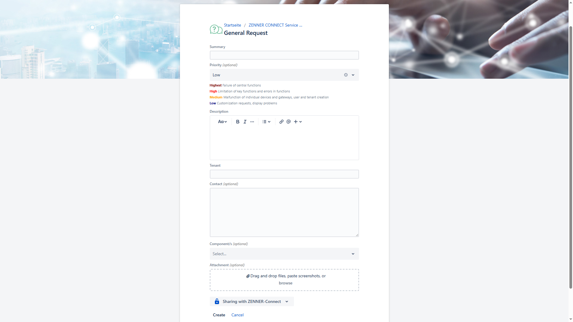 To report a problem or error, it is best to use the ZENNER Connect Service Desk.